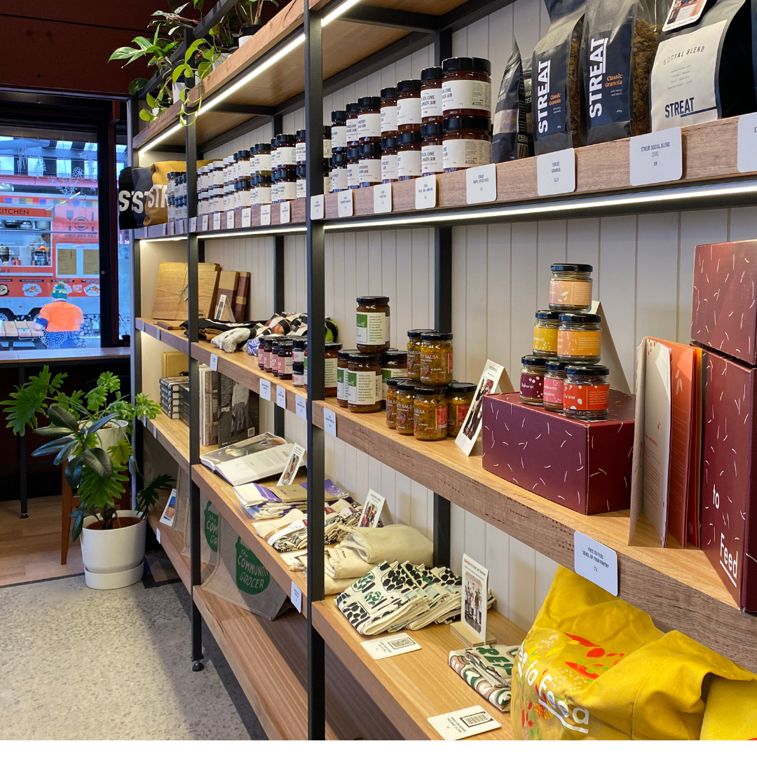A store filled with food products from Victorian social enterprises as well as delicious circular products coming out of the Moving Feast Kitchen just a few doors down.