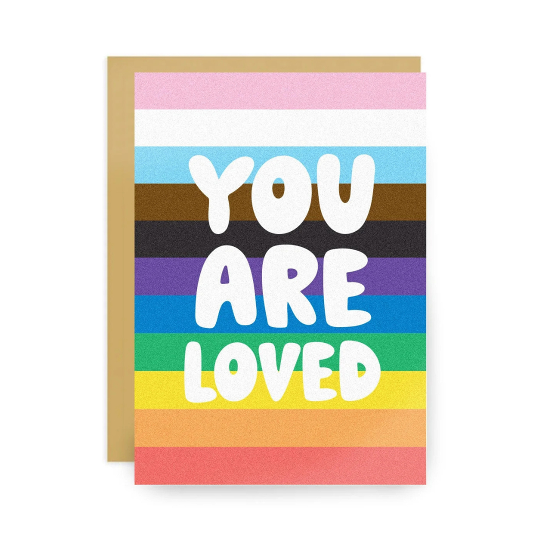 This simple message combined with the progress pride flag lets you remind someone how loved they are. Through fun times, hard times, party times, Pride times and Mardi Gras times - spread the love!